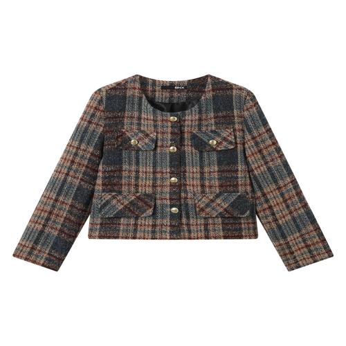[비엔엑스]트위드 금장 버튼 체크 긴팔 자켓 (BX3JK015L0)