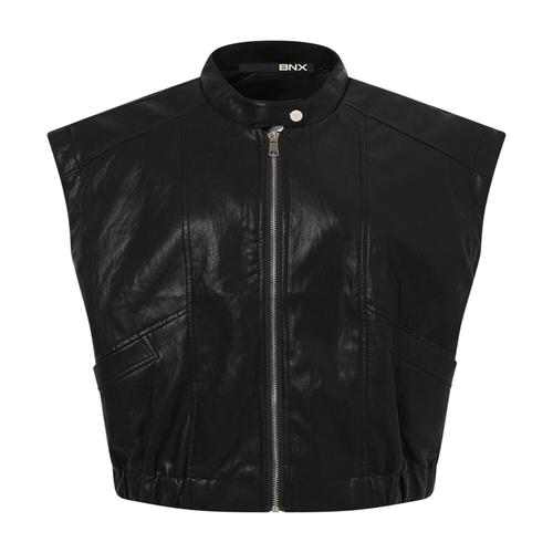 [비엔엑스]여성 유광 하이넥 스트링 레더 자켓