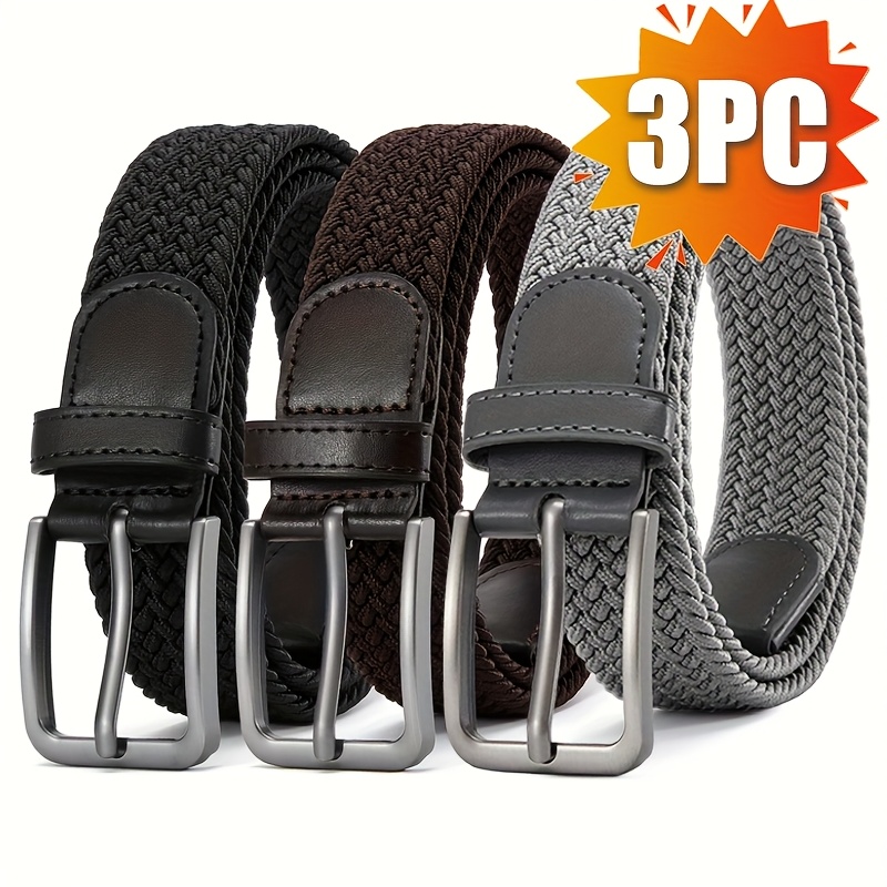 TEMU 남성용 3개 세트 탄성 벨트 세트 - 1 3/8" 폭 탄성 골프 벨트, 캐주얼 원단, 캐주얼 벨트 | 탄성 벨트 블랙 진/스포츠 웨어 유니버설 내구성 편안한 통근 바지