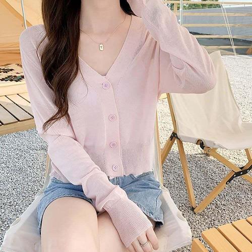 [모노무드]모노무드 여름 브이넥 파스텔 비치 캐주얼 미니 긴팔 가디건