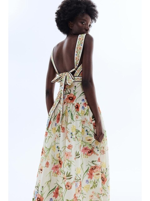 TEMU 여성용 원숄더 반팔 원피스, 러플 헴, 나비 프린트, 핏팅한 실루엣으로 여름에 완벽