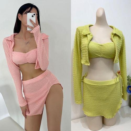 [에이치플러스몰]토크넛비키니세트 가디건 무지 스커트 여성 비치 워터파크 비치 커버업 3PCS