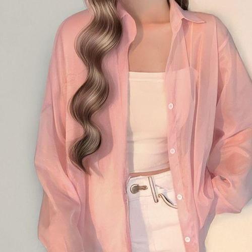 [에이치플러스몰]모리셔츠 비키니 커버업 여름 비치 시스루 카라 셔츠 박시 핑크 블라우스 얇은 시원한 ..