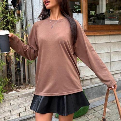 1+1 오버사이즈 스트링 배색 라운드 크루넥 나그랑 긴팔 맨투맨 티셔츠 상의 여성 여자