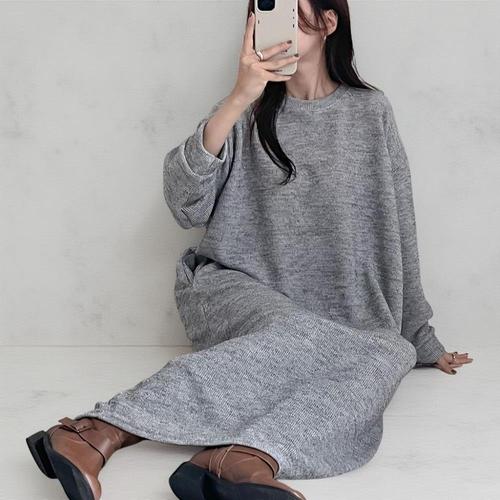 [에이치플러스몰]입술넥 베이직 루즈핏 니트 롱원피스 올데이 빅사이즈
