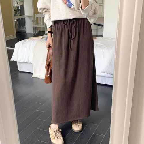 [신상오픈런]여성 골지 롱스커트 빅사이즈 뒤트임 리본 밴딩