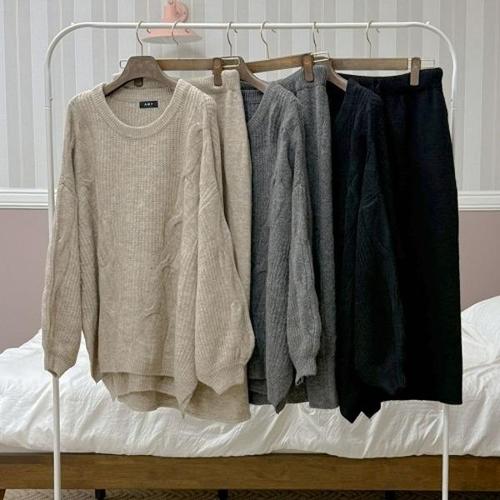 [다잇템][다잇템] 여성 FW 스커트 니트와 롱슬리브 빅사이즈 세트_23027146_588872