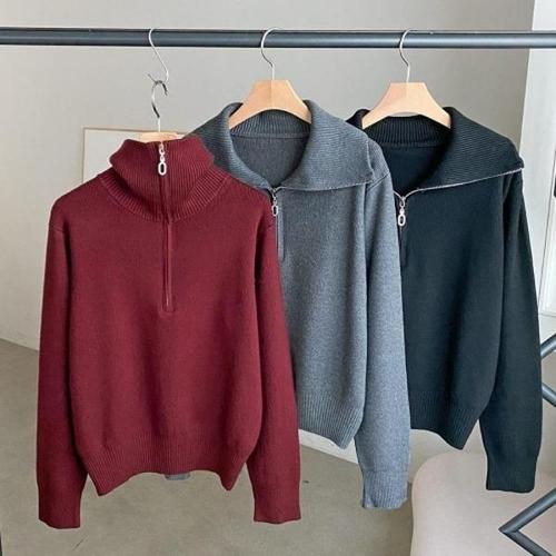 [다잇템_패션]여성 하프집업 롱슬리브 빅사이즈 후디 니트