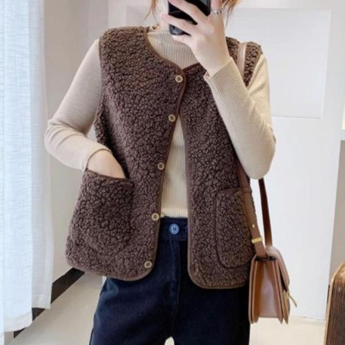 [다잇템]여성 U넥 양털 포근한 단추 빅사이즈 퍼 조끼