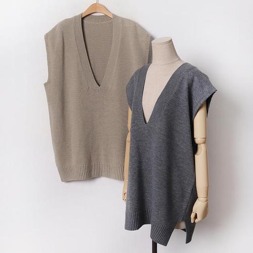 [셀러허브_여성트랜드패션]빅사이즈 601 딥브이넥롱니트베스트 DEBB475