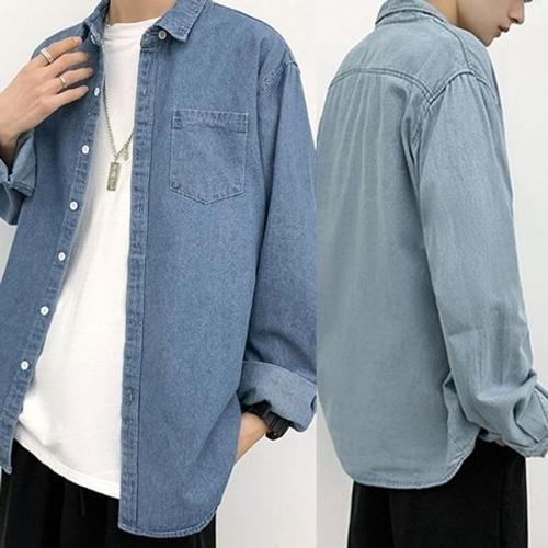 [1+1] 남자 논페이드 오버핏 데님 청셔츠 (6706-2)
