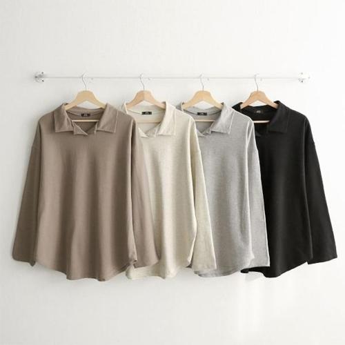 [다잇템] 여자 박시핏 굴림 민무늬 빅사이즈 힙커버 카라넥 티셔츠