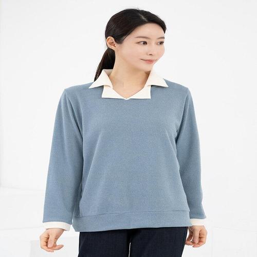 [모슬린]엄마옷 배색카라 골지 긴팔티셔츠 602FGH026 마담/중년여성/빅사이즈/50대/60대