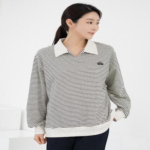 [모슬린]엄마옷 카라 단가라 맨투맨 면티셔츠 602FGH024 마담/중년여성/빅사이즈/50대/60대