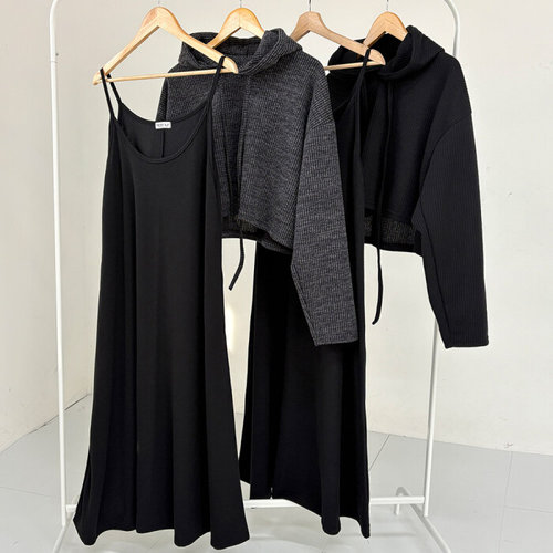나야홍 / 빅사이즈투피스 X102L601 골지후드끈원피스세트 BA