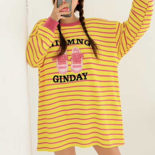 나야홍 / 아이우먼 핑크운동화줄지티셔츠 MAV825M512 빅사이즈