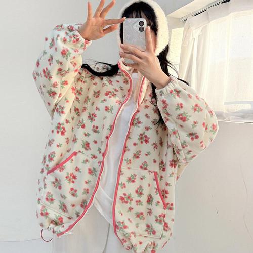 빅사이즈 601 컬러플라워집업후리스 DPOV950