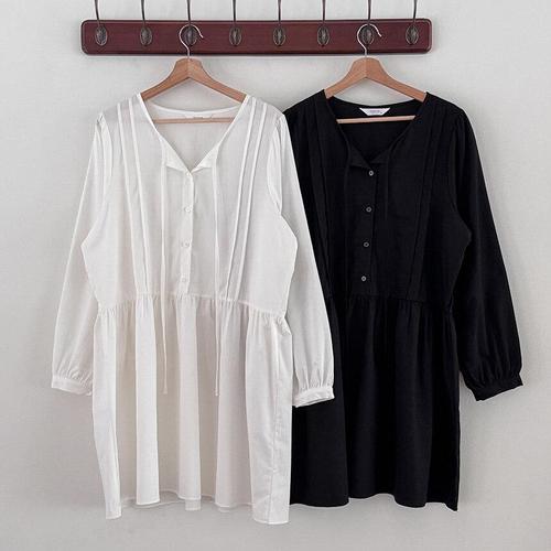 [옷자락] 여성 앞트임 스트랩 빅사이즈 봄철 면 미디 드레스