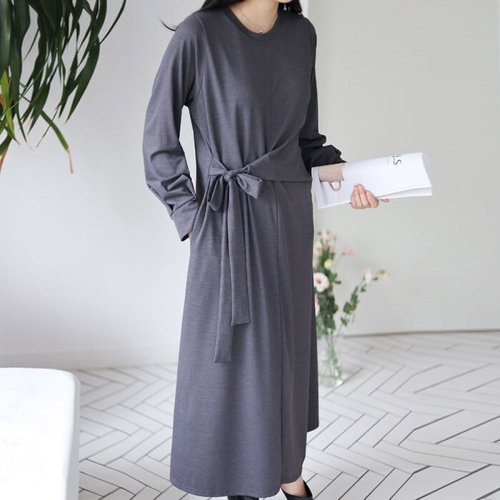 니트코어 여성 여름 루즈핏 빅사이즈 코지 랩 니트 원피스 랩스커트 만삭 임부복 임산부원피스 등하원룩 하객룩 하객원피스
