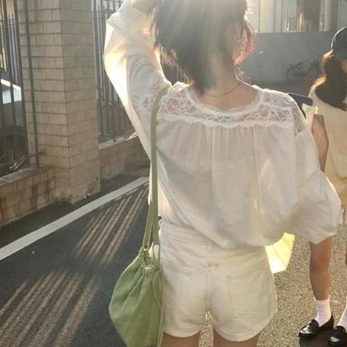 [다잇템]여자 레이스 빅사이즈 면원단 코디 밑단 셔츠