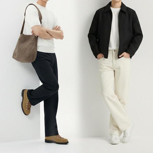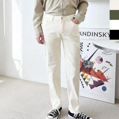 남자 남성 사계절 와이드 뒷밴딩 치노 화이트진 블랙진 스판 면 바지 팬츠 빅사이즈