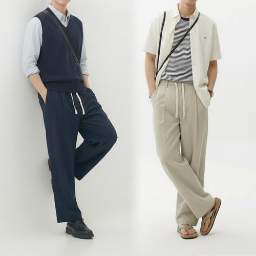 남자 면바지 스판 허리 밴딩 구김없는 세미 와이드 팬츠 남성 치노팬츠 일자 통바지 빅사이즈 28~38
