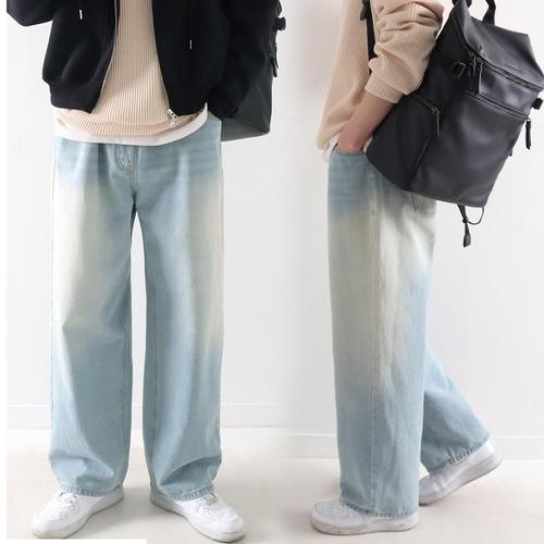 [지지블랙][1+1] 키츠 빈티지 샌드워싱 밴딩 롱 와이드 청바지 데님 팬츠 빅사이즈 ZZBBT095