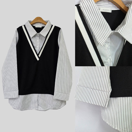 나야홍 / 아이우먼 가비브이배색카라셔츠 BST895M602 빅사이즈
