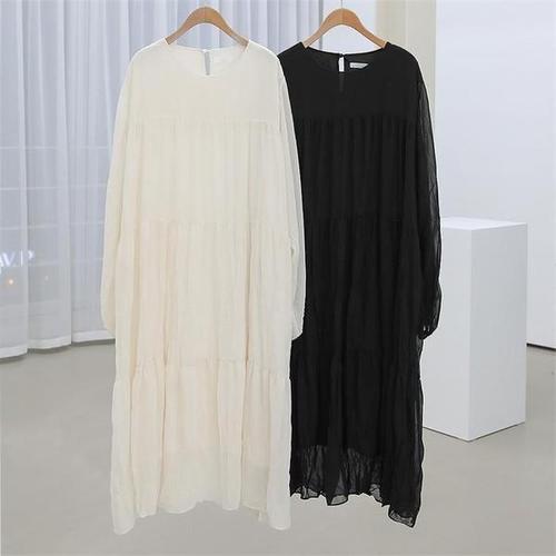 새로본 850여름상품린넨 가을나염쉬폰빅사이즈 긴팔미디롱원피스 여성OPS 여자면반팔