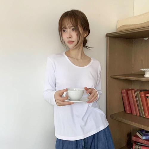 [다잇템]여성 롱슬리브 U넥 코디 빅사이즈 티셔츠