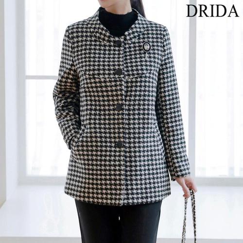 드리다 여자 겨울 울 하운드 체크 빅사이즈 차이나 자켓 40-50대 미시 중년여성 엄마옷 하객