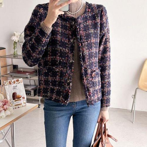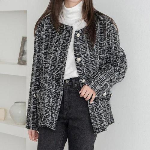 UPPERCUT 자체제작 여성 라운드넥 클래식 긴팔 트위드 자켓 빅사이즈