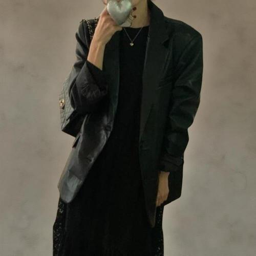 [다잇템]여성 수트핏 레더 힙무드 빅사이즈 주머니 자켓
