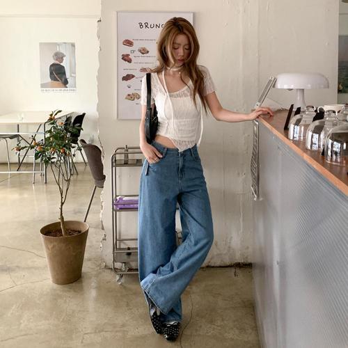 코모도 여성 와이드 청바지 절개 라인 롱 데님 팬츠 ( 2단기장 )