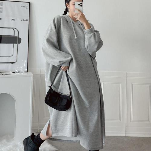 [옷자락] [시즌오프]기모 빅사이즈 큰옷 임부복 트임 후드 롱원피스_5