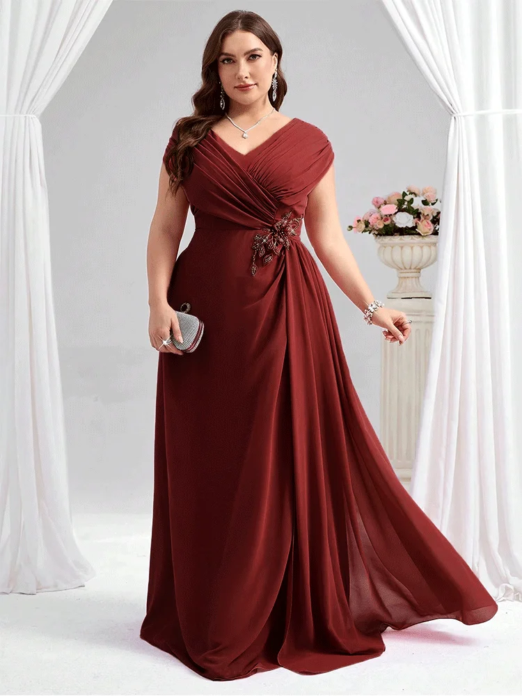 A 라인 신부 어머니 원피스 웨딩 하객 우아한 플러스 사이즈 V 넥 발목 길이 레이스 비즈 아플리케, 맞춤형 무료 2025