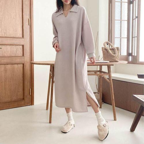 [보리맘]카라 트임 니트 조직 가을 빅사이즈 롱 원피스