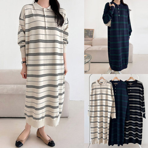 스트라이프 카라 니트 가디건 긴팔 루즈핏 여성 빅사이즈