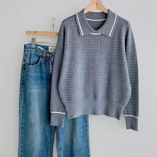 NUNUHANA 빅사이즈 여성 카라넥 니트 두툼 배색 긴팔 BMA0107