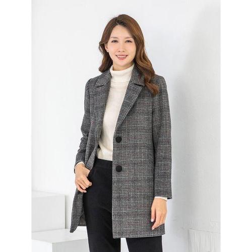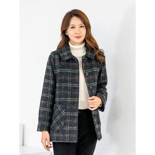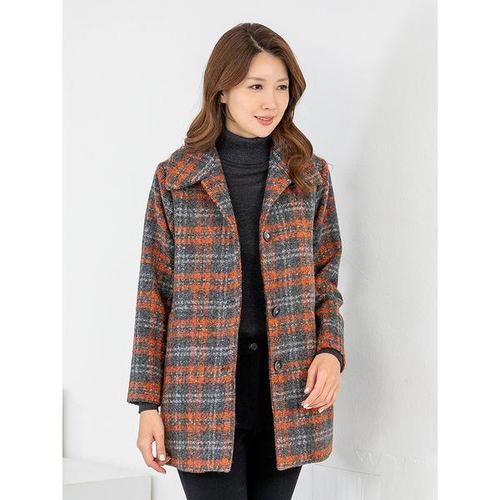 [모슬린]엄마옷 카라 울모직 체크누비반코트 MQG125496 마담 미시 중년여성 빅사이즈 할머니옷 50대 60대..