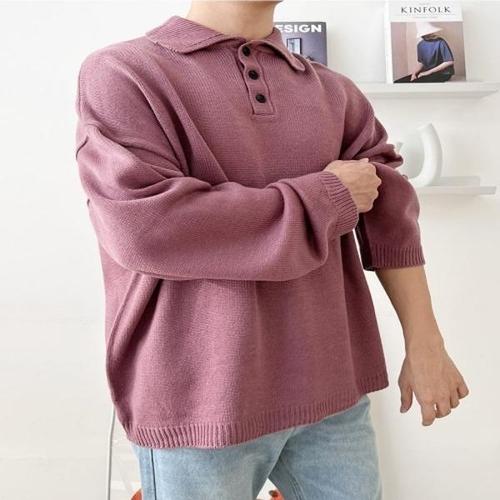 [엄지척]남자 빅사이즈 데일리 단추 넥카라 소프트 컬러 니트_20484406_667501