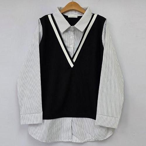 [셀러허브_여성트랜드패션]빅사이즈 602 레트로카라배색니트셔츠 DBST895
