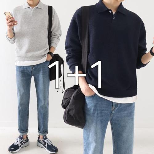 [라일리] Rly 남성 빅사이즈 카라니트 남자 기본니트 케쥬얼스타일
