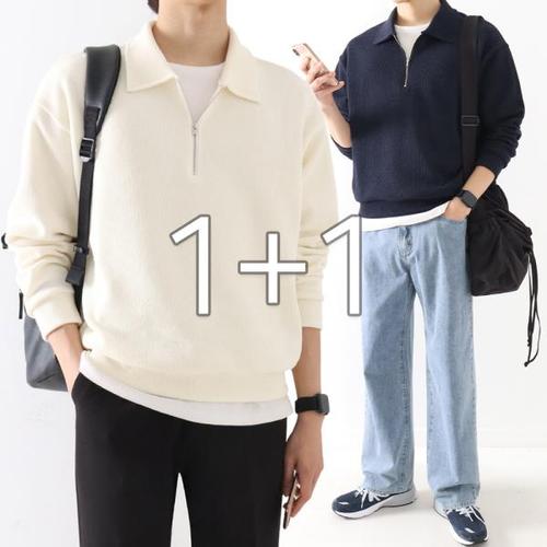 [지지블랙][1+1] 리건 소프트 오버핏 카라 반집업 니트 스웨터 빅사이즈 ZZBKN047