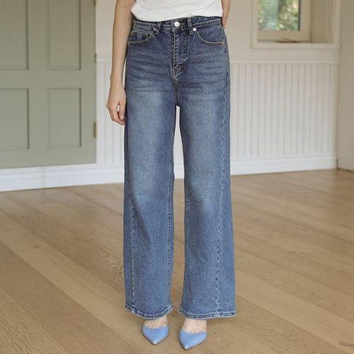 [삐까삐까]하이웨스트 옆선 와이드 데님 팬츠 시크릿밴딩 빅사이즈 브러쉬워싱 롱다리 청바지 501