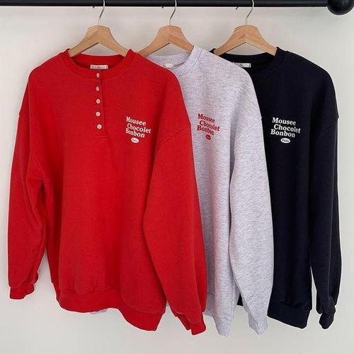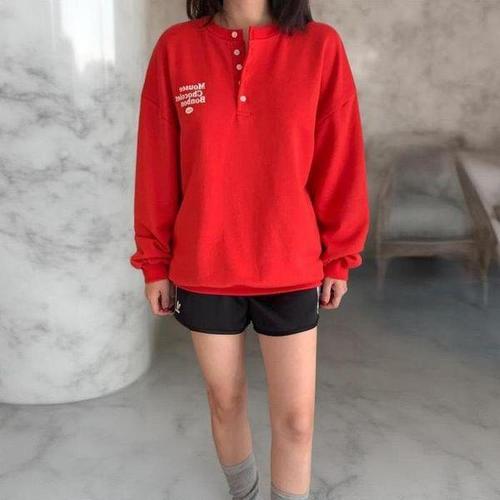[다잇템_패션]여성 FW 빅사이즈 반버튼 헨리넥 필기체 맨투맨