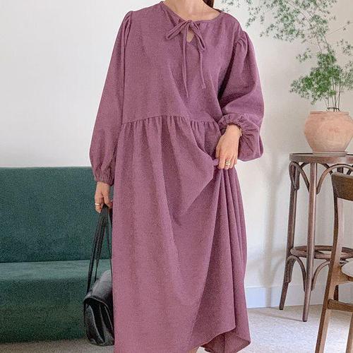 [신상오픈런]여성 골덴 롱원피스 리본 퍼프 소매 빅사이즈 임산부복