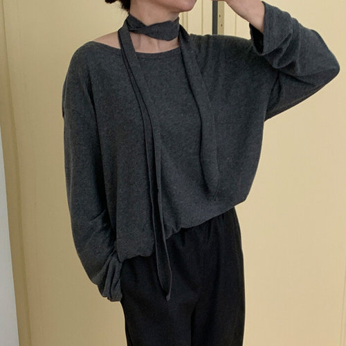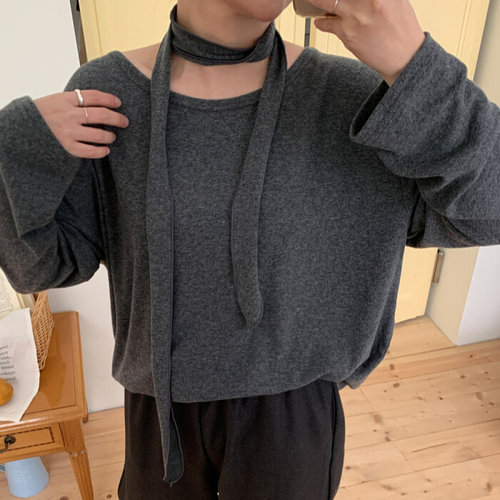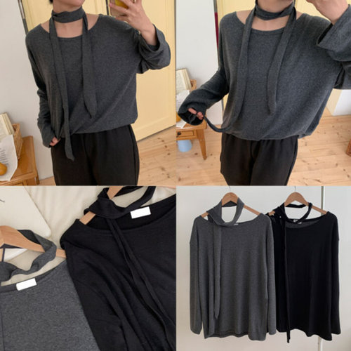 나야홍 / 빅사이즈티 T535L601 스카프보트넥기모긴팔티 MO