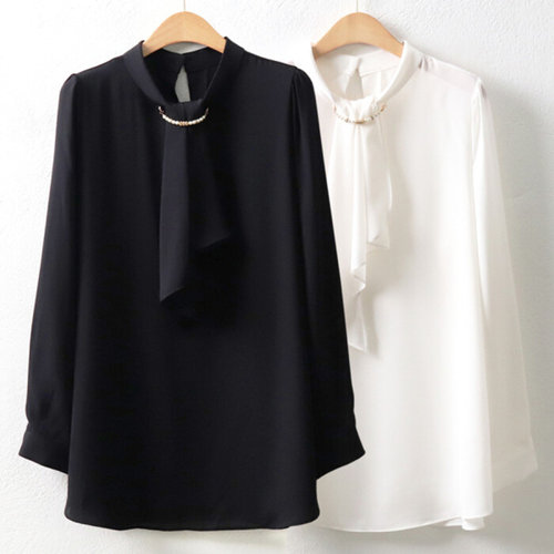 [드리다]봄 여성 스카프 장식 쉬폰 빅사이즈 정장 블라우스 40-50대 중년여성 엄마옷 미시 상견례 하객룩