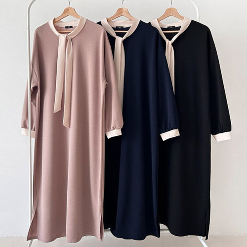 엄마옷 배색 스카프 타이 원피스 OP515321 중년여성의류/60대/70대/마담/빅사이즈/할머니옷